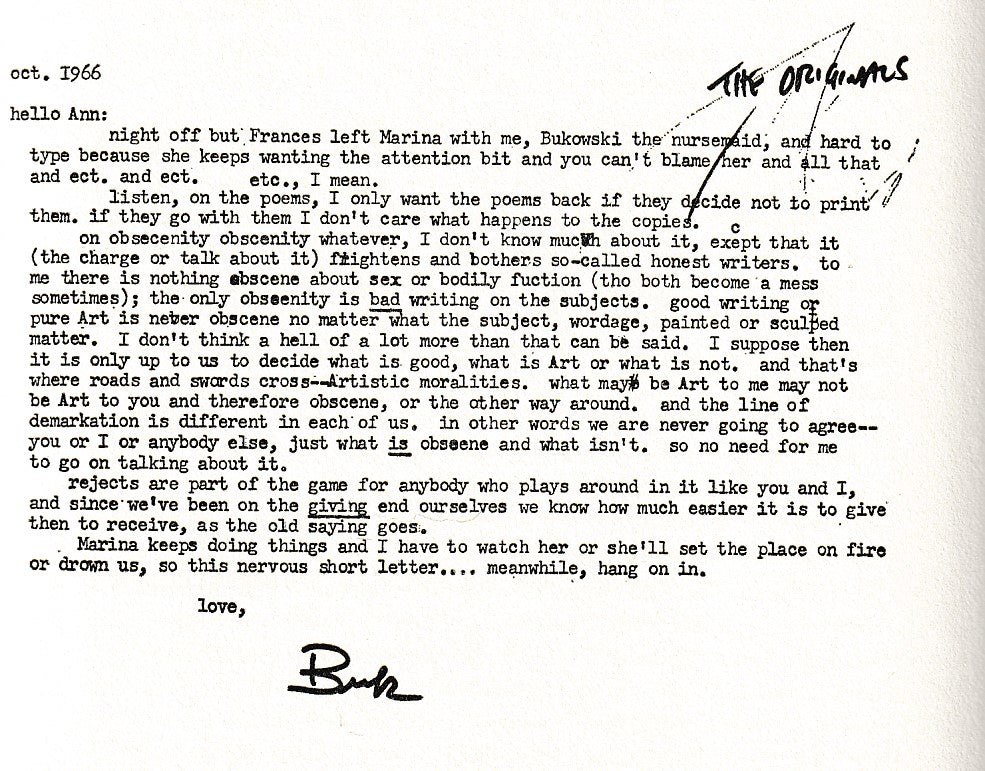 There are also some Bukowski poems included and two letters.