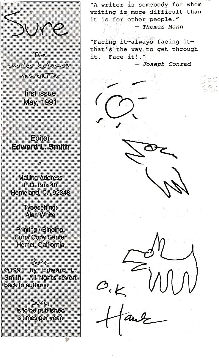 Sure was a fanzine that first appeared in 1991 before the internet became mainstream and Charles Bukowski was still alive. It was a very good source of information on Bukowski when there was little else out there.