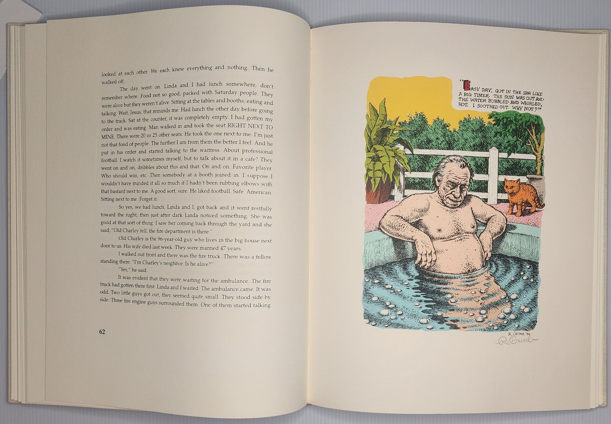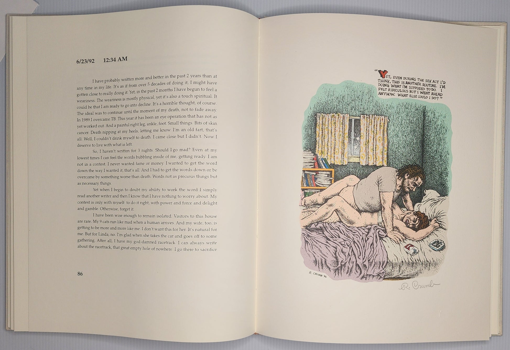 This is a large book, measuring approximately 14.5” x 11.5” and features five full-page colored serigraphs, each signed by Crumb in pencil. There are also an additional five unsigned black and white printed illustrations.