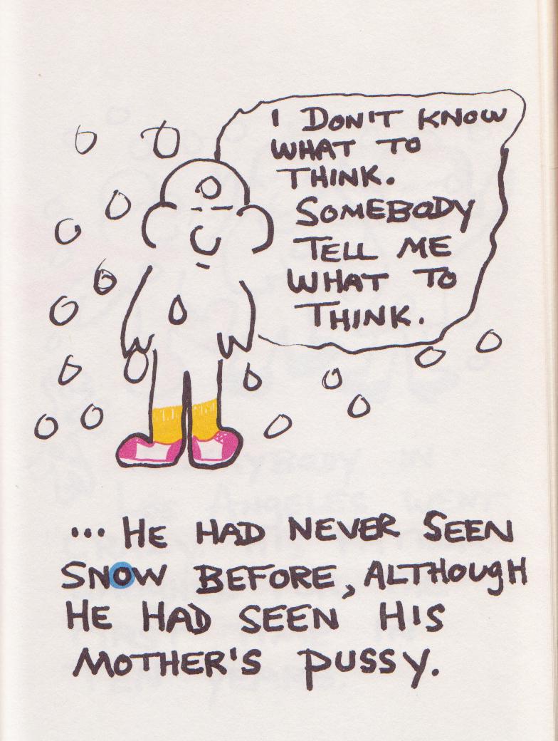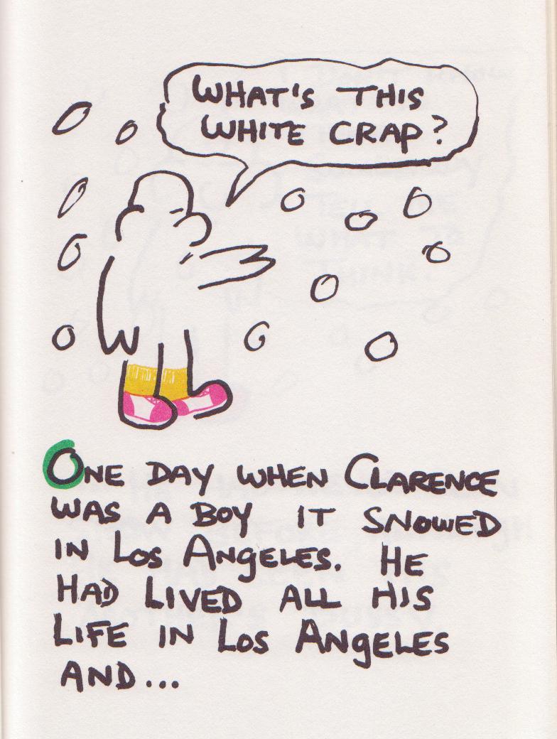 Published in 1986 by Sutten West/ Paget Press out of Canada, The Day It Snowed In L.A. is a funny, charming short story with lots of great illustrations by Charles Bukowski.