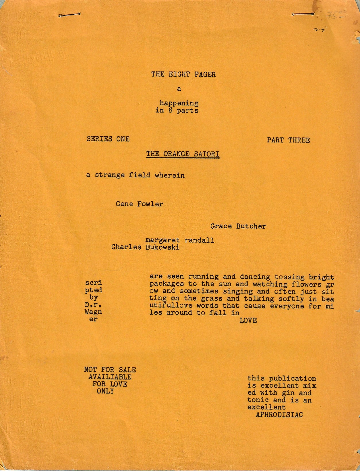 Published in 1966 by D.R. Wagner, The Eight Pager, Vol. 1, No. 3, featured two Bukowski poems: