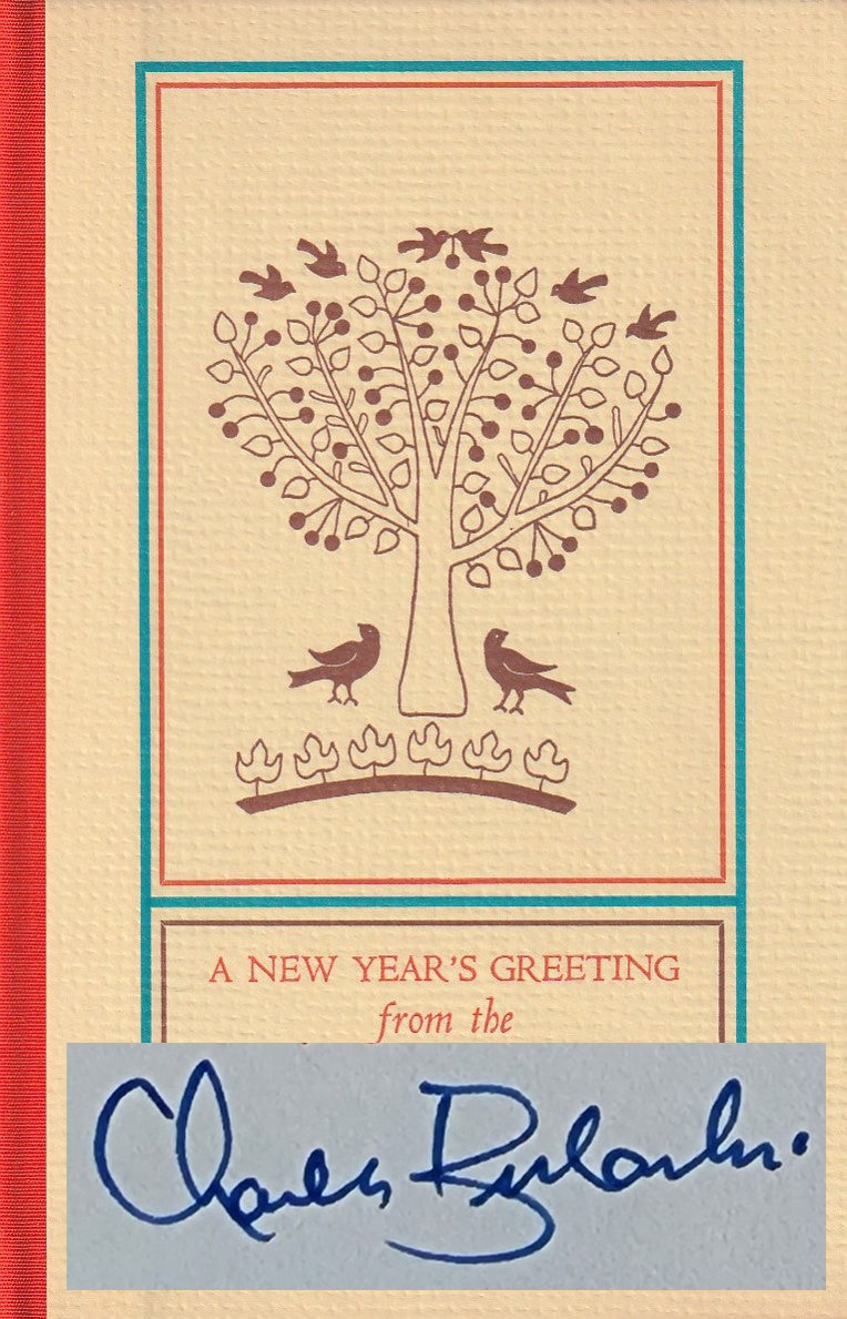 The 1976 greeting was also one of the larger in size, measuring approximately 8” x 5.5”. It is bound in cream paper covered boards with an orange cloth backstrip and is issued in a thick unprinted white paper dust jacket.