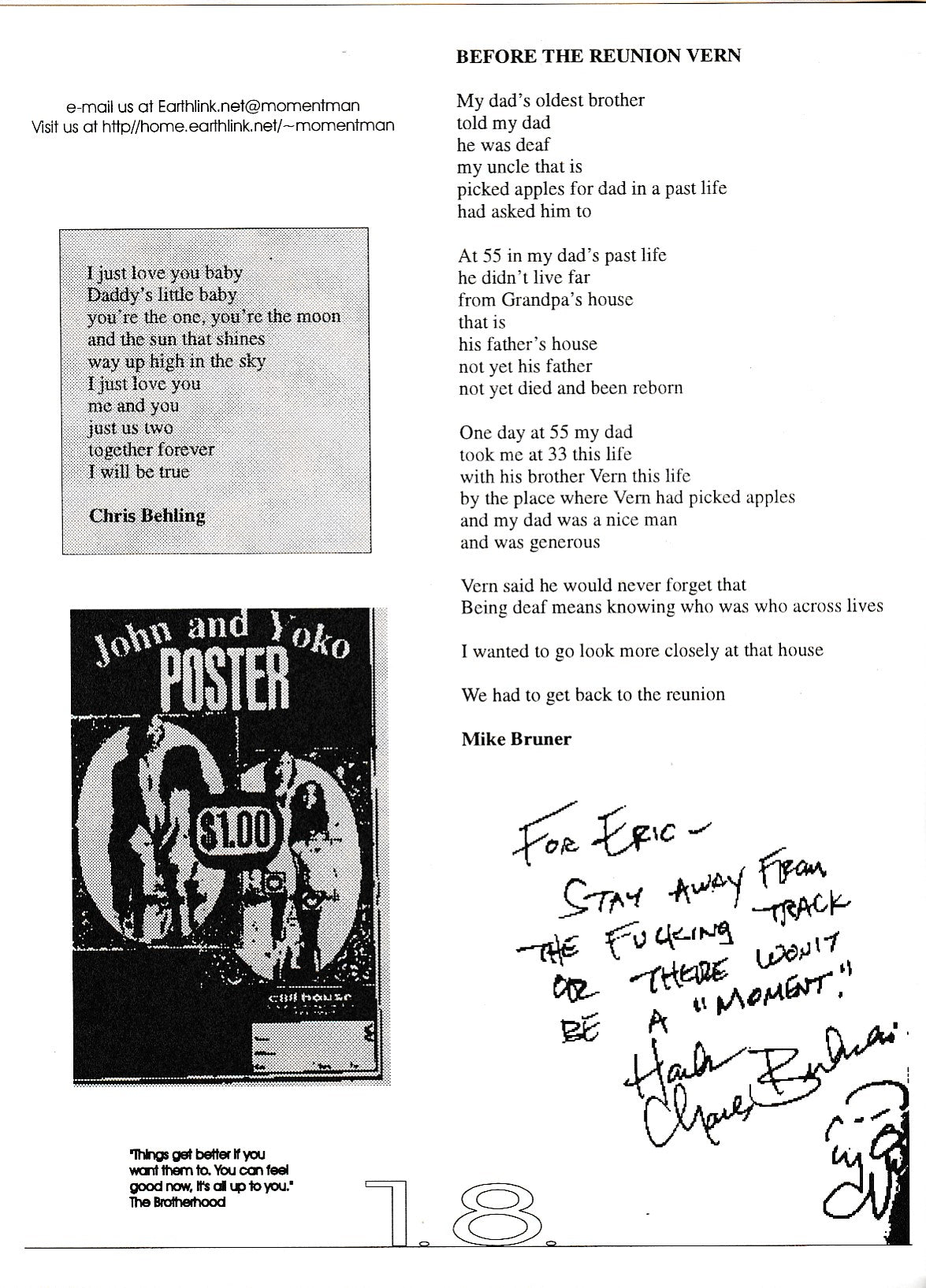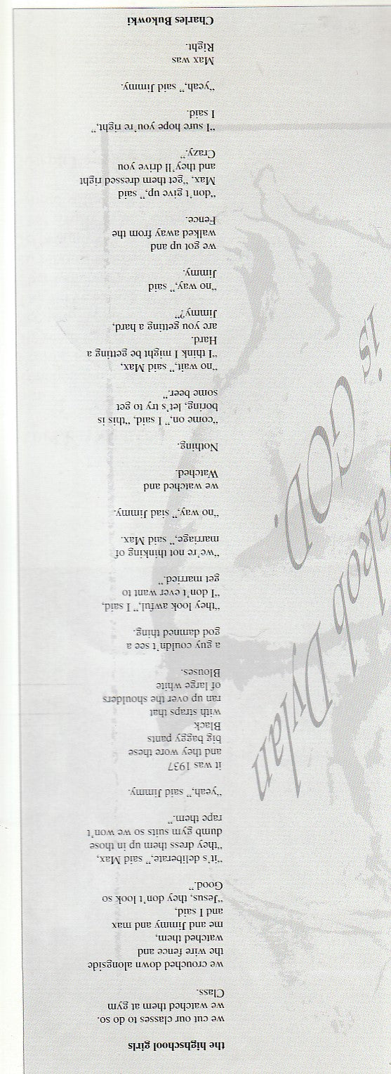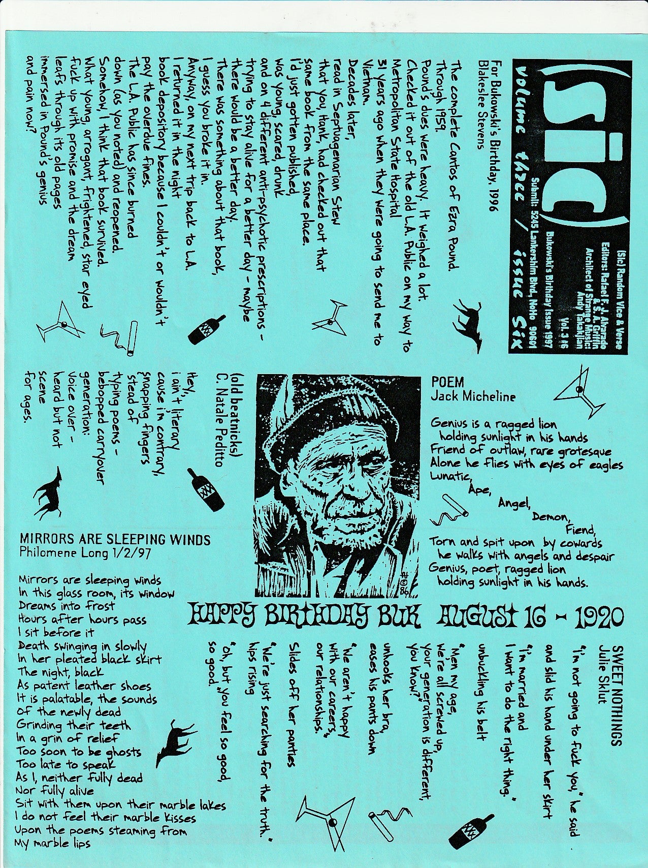 The Moment 15 (Fall 1997) featured the Charles Bukowski poem: