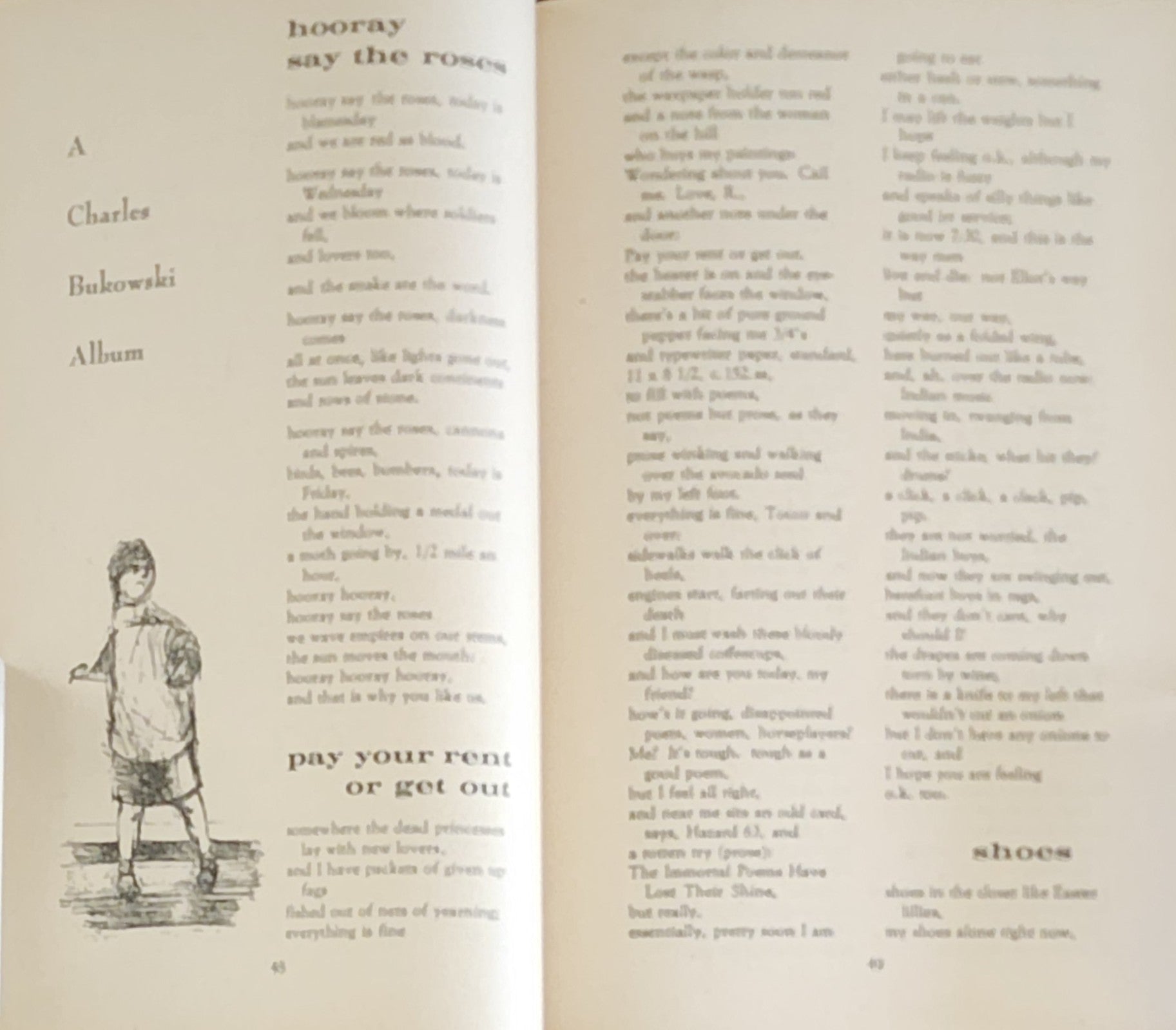 This first issue of The Outsider featured “A Charles Bukowski Album” that featured a six-page section with 10 poems: