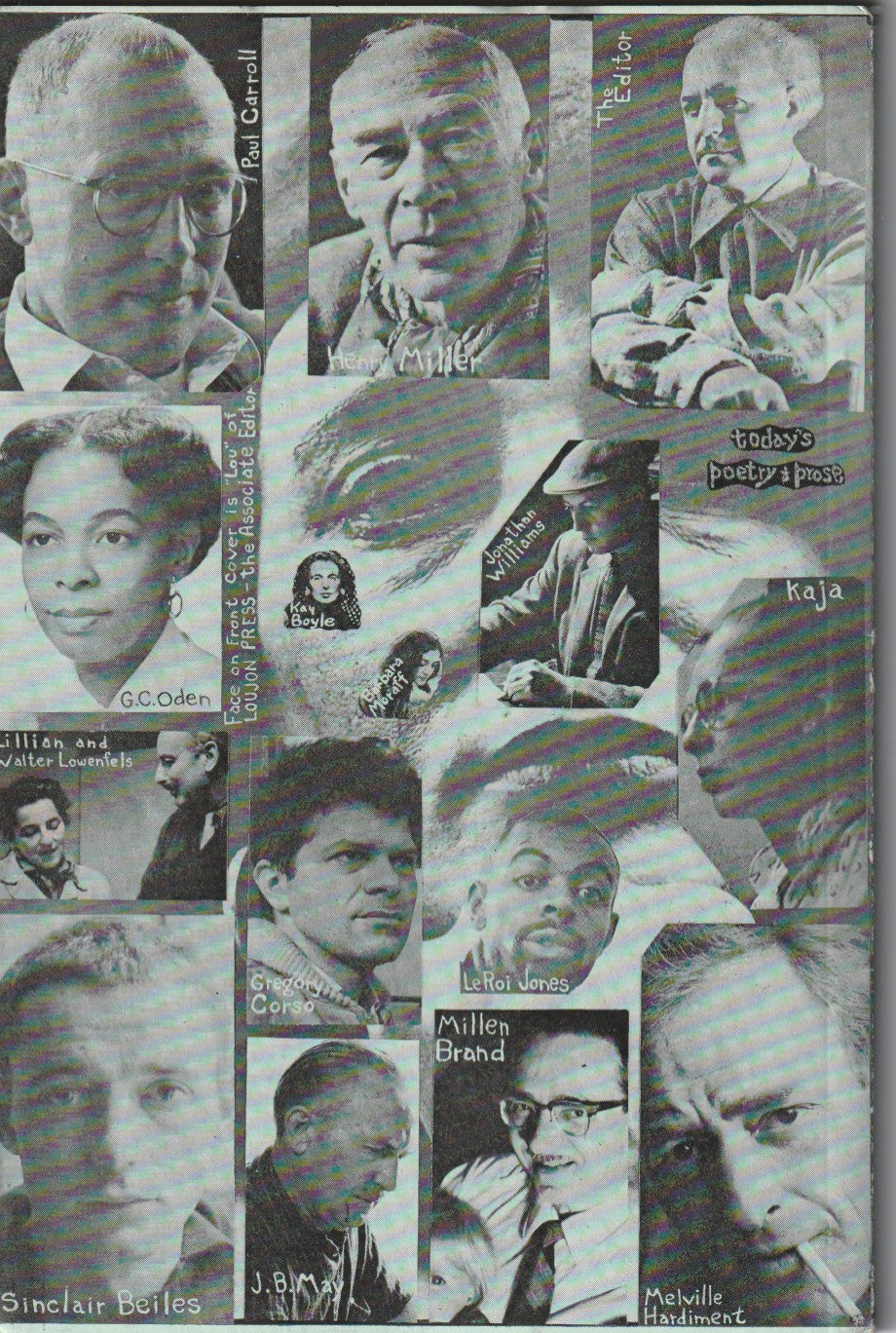 Other contributors include Allen Ginsberg, Henry Miller, Gregory Corso, Diane DiPrima, Gary Snyder, Charles Olson, Edward Dorn, Langston Hughes, Robert Creeley, LeRoi Jones, William S. Burroughs and more.