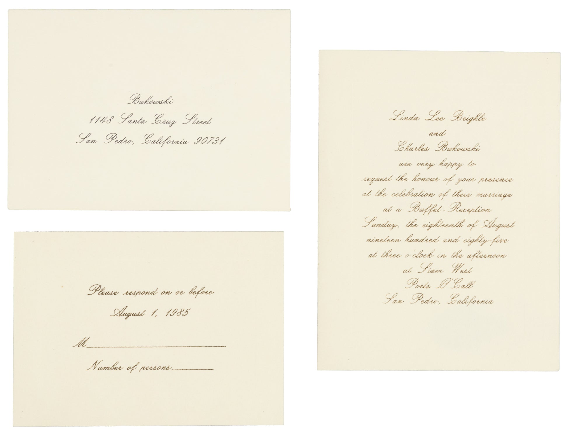 - An original drawing of the bride and groom by Bukowski and Linda Lee