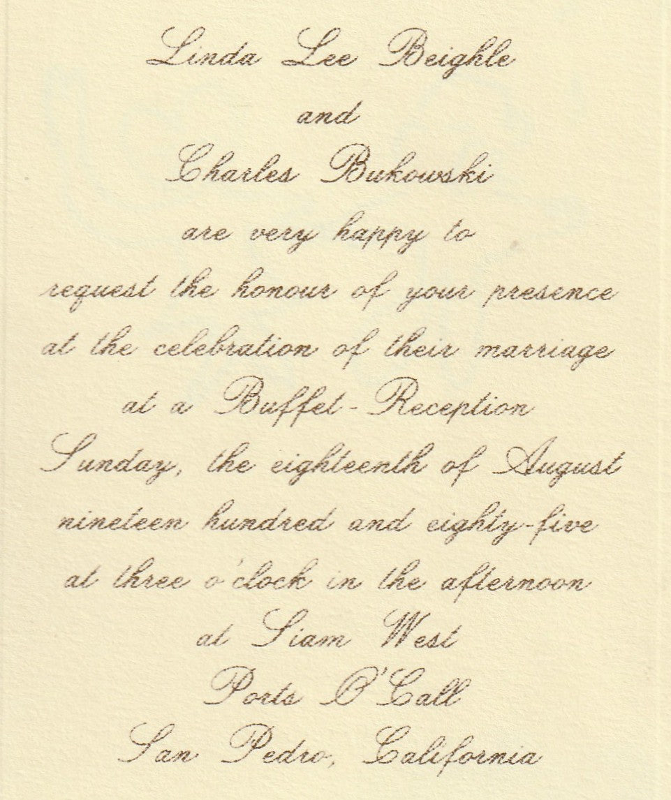This is Black Sparow Press’ album for Charles Bukowski’s wedding to Linda Lee Beighle in 1986.