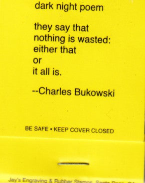 This is a complete set of the Bukowski matchbook poems that Black Sparrow Press published in 2000.