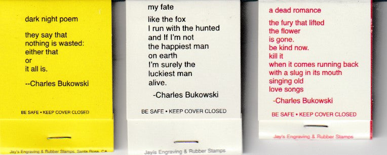 Three Black Sparrow Matchbook Poems by Charles Bukowski