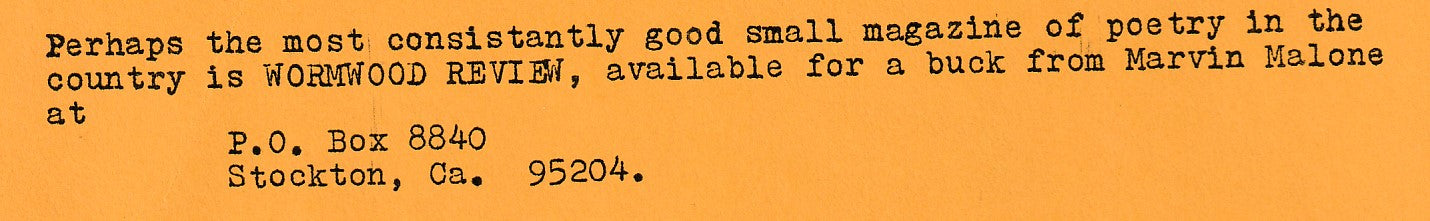 Published in 1971, Vagabond 12 featured one Charles Bukowski poem: