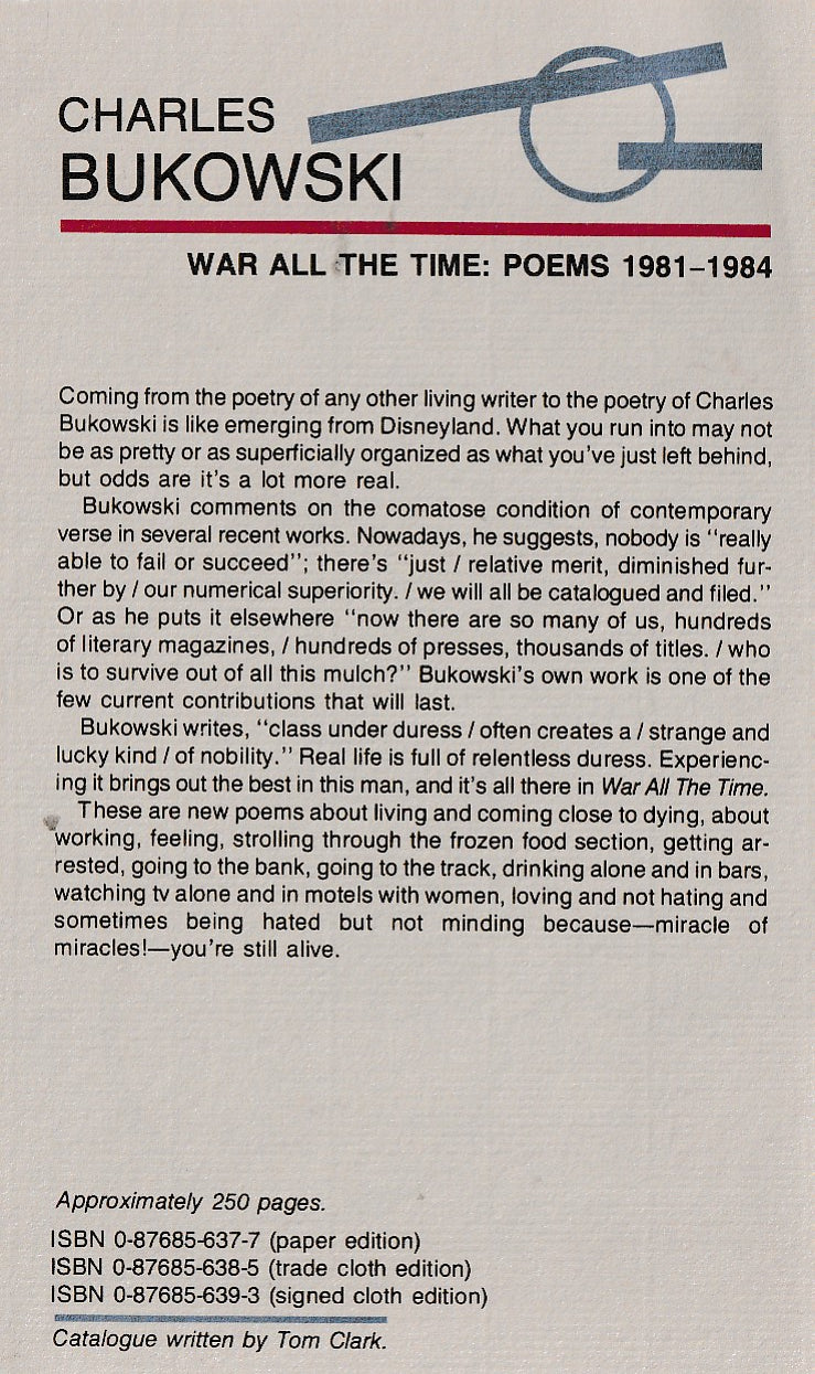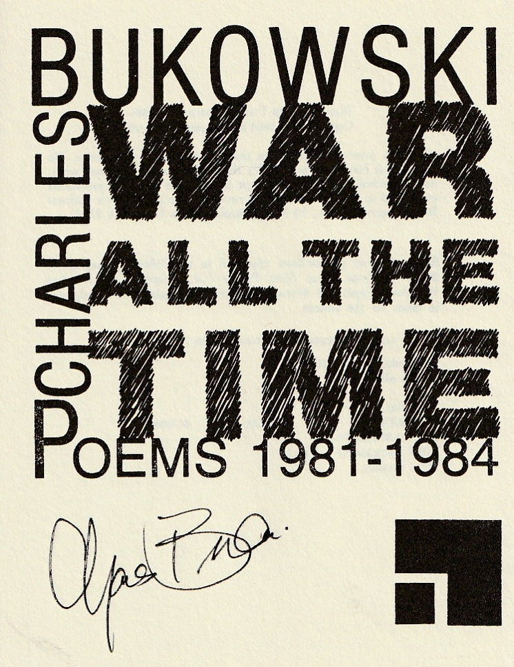 This is a Hardcover copy of the 3rd Printing Charles Bukowski’s book, War All The Time.