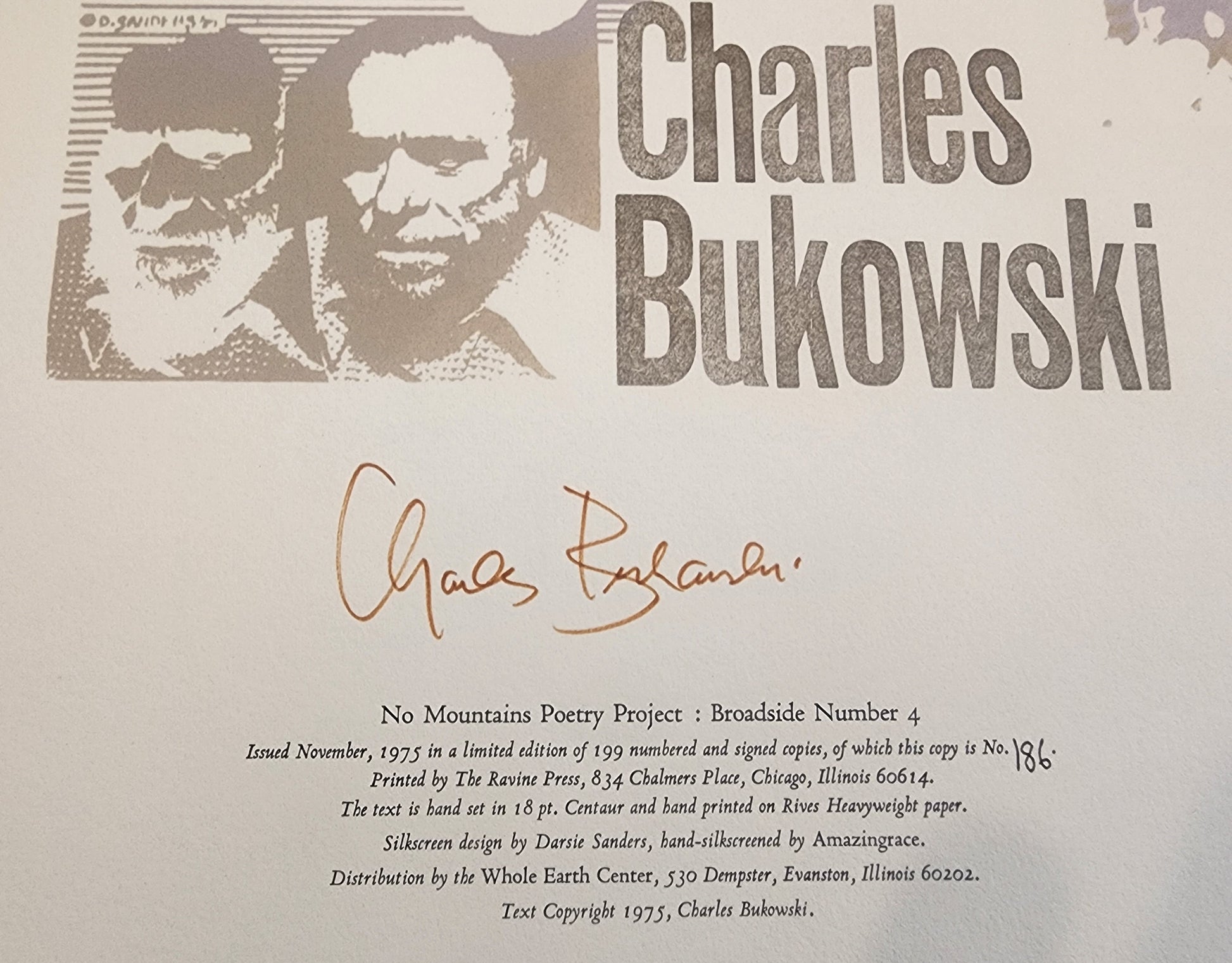 This is copy #186/199 copies and Bukowski has added a large “little man” drawing.