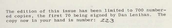Published in 1986, only 700 copies of Wormwood102 were printed, this one being copy 223.