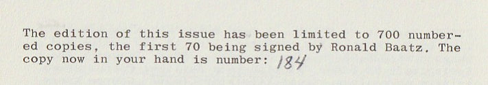 Published in 1986, only 700 copies of Wormwood 104 were printed, this one being copy #184.