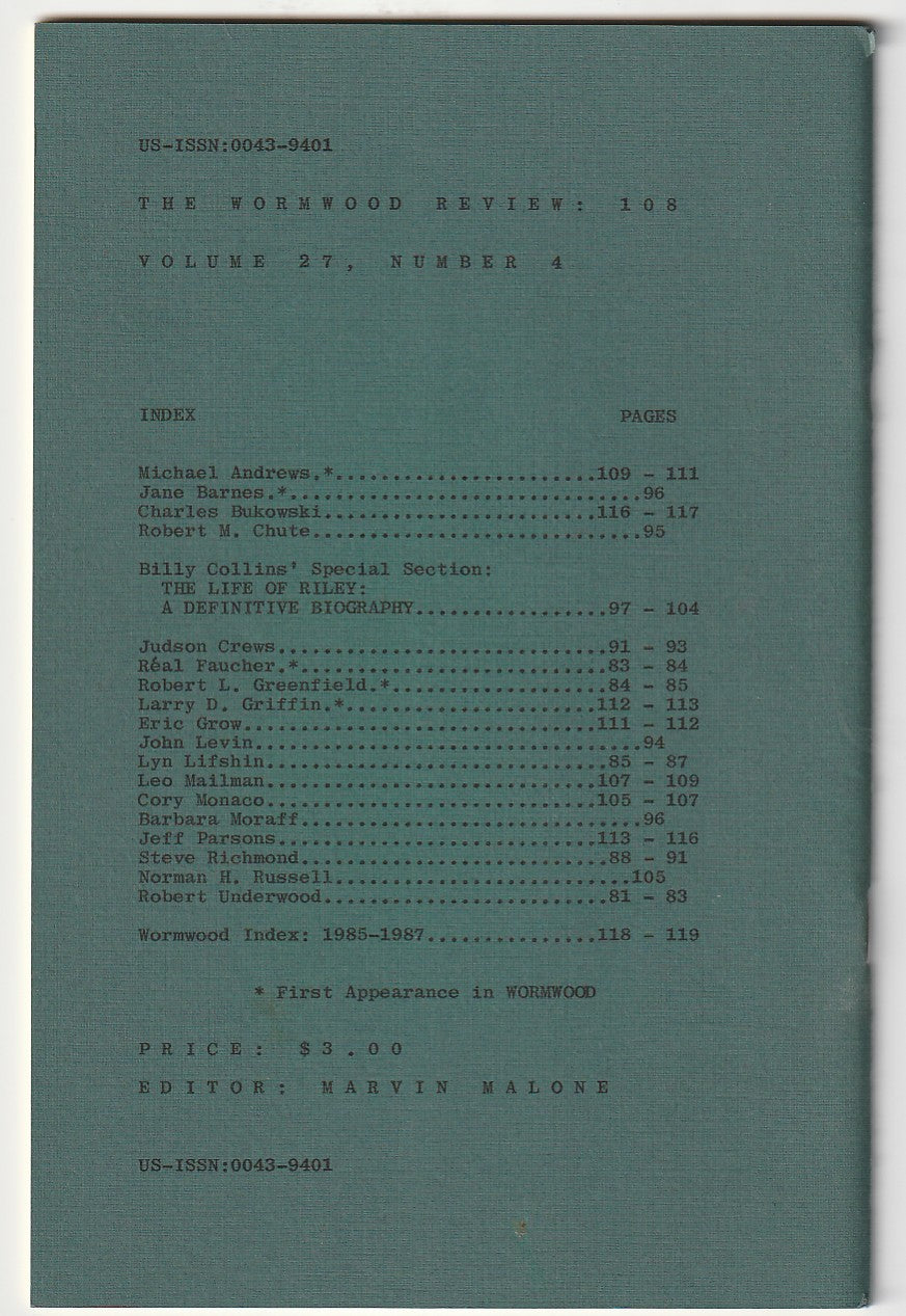 Wormwood Review 108 #159/700 — 2 Poems. One Uncollected by Charles Bukowski