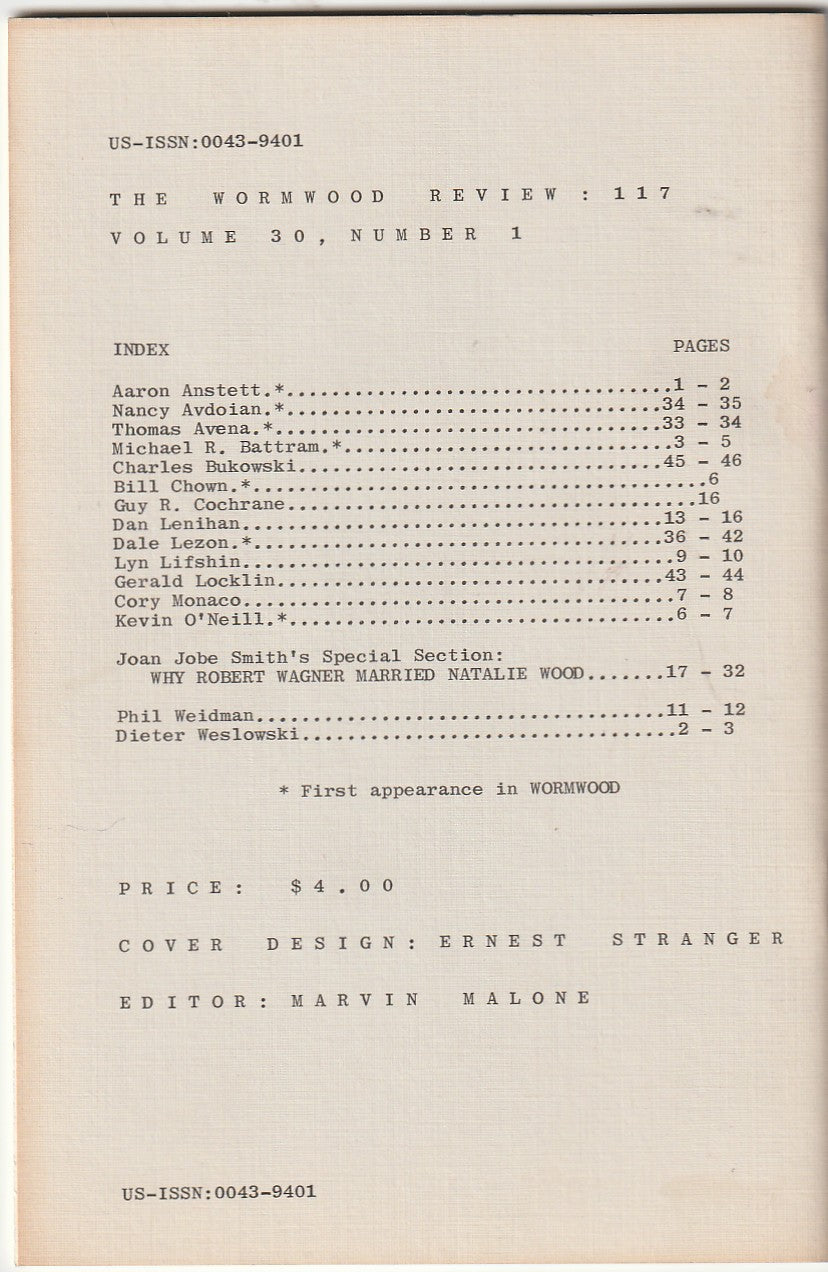 Wormwood Review 117 #188/700 — 3 Poems by Charles Bukowski