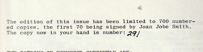 Published in 1990, only 700 copies of Wormwood 117 were printed, this one being copy #291.