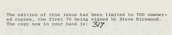 Published in 1990, only 700 copies of Wormwood 120 were printed, this one being copy #317.