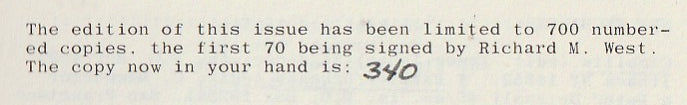 Published in 1992, only 700 copies of Wormwood 127 were printed, this one being copy #340.