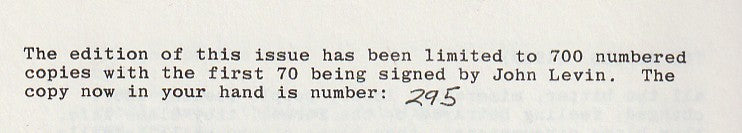 Published in 1995, only 700 copies of Wormwood 137 were printed, this one being copy #295.