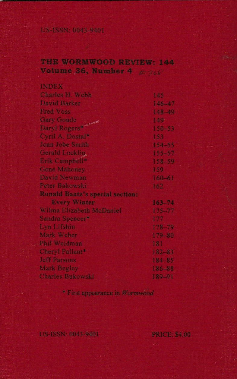 Published in 1997 Wormwood Review 144 was Marvin Malone’s final issue before his death.