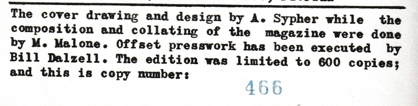 Wormwood Review was published by the legendary Marvin Malone (1930-1996). Malone was a pharmacologist, scientific researcher, educator, artist, poetry collector, and editor. Upon arrival to Storrs, Connecticut in 1960, Malone discovered the second issue of Wormwood Review and soon took over the publication as the sole editor, publisher, and designer (alias A. Sypher), producing quarterly issues until his death in 1996.