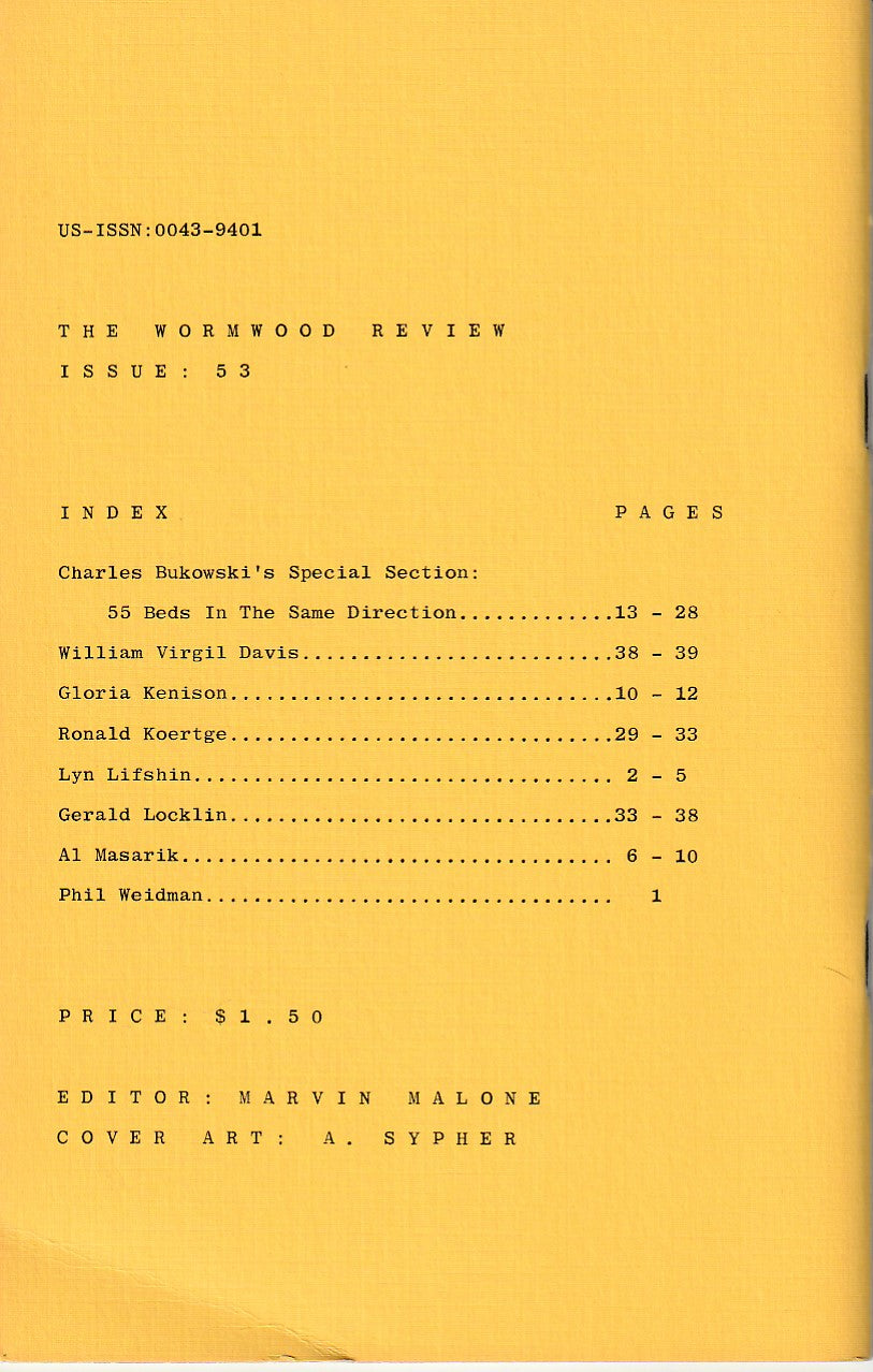 Wormwood Review 53 #540/700 – 55 Beds In The Same Direction Special Charles Bukowski Section (1974)