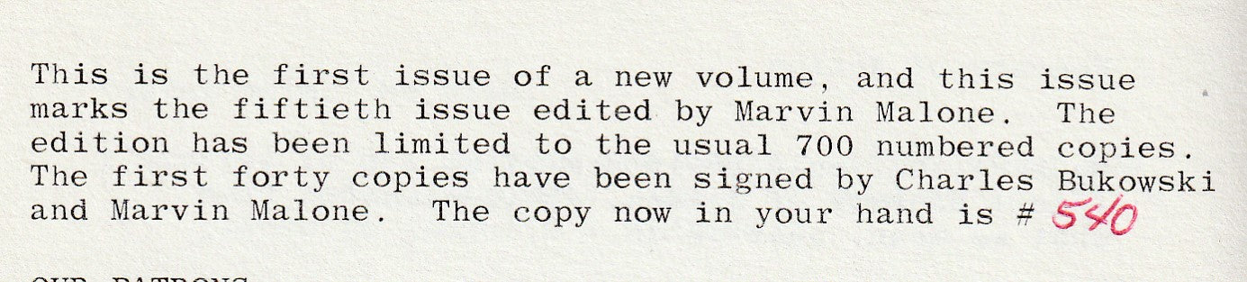 This issue contains nine Bukowski poems, five of which were never published again.