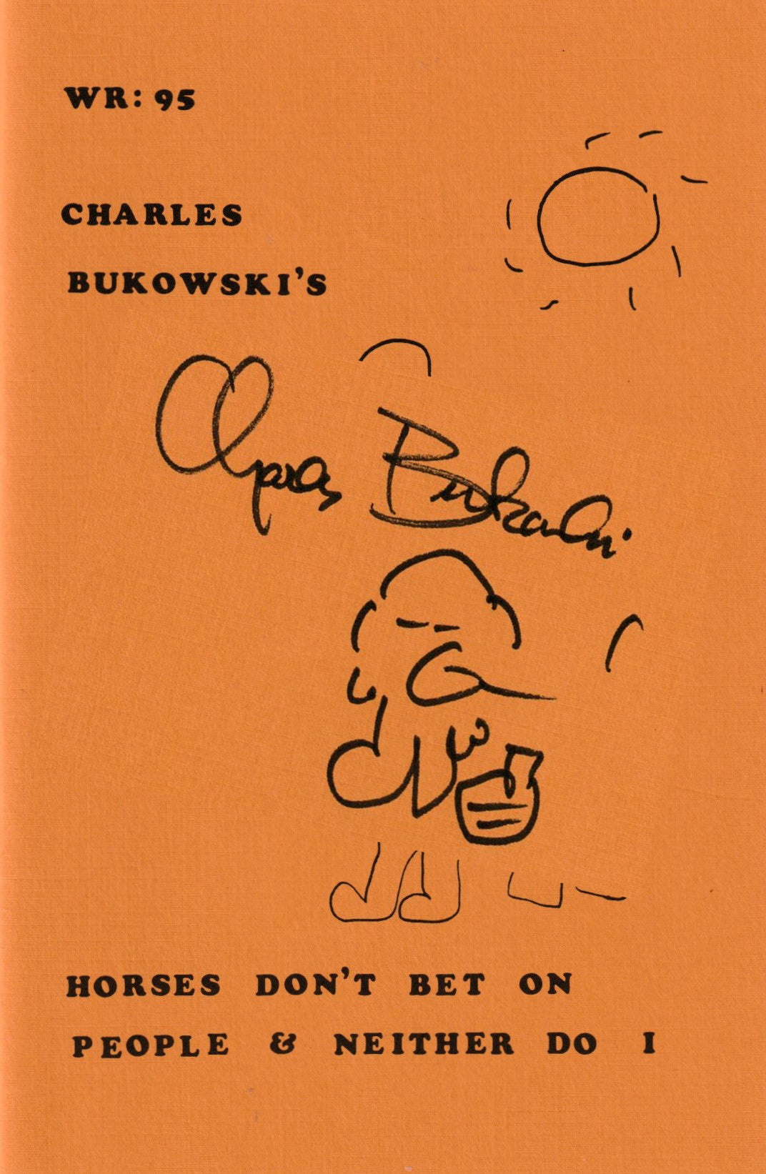 Published in 1984, this is the Deluxe edition of Wormwood 95, named Horses Don’t Bet On People & Neither Do I. It is signed by Charles Bukowski on the rear of the front cover with a drawing of his signature Little Man with a Bottle character.