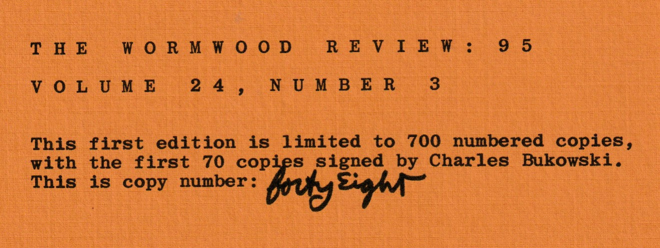 Wormwood Review 95 -- Deluxe Edition Signed by Charles Bukowski with Drawing (48/70)